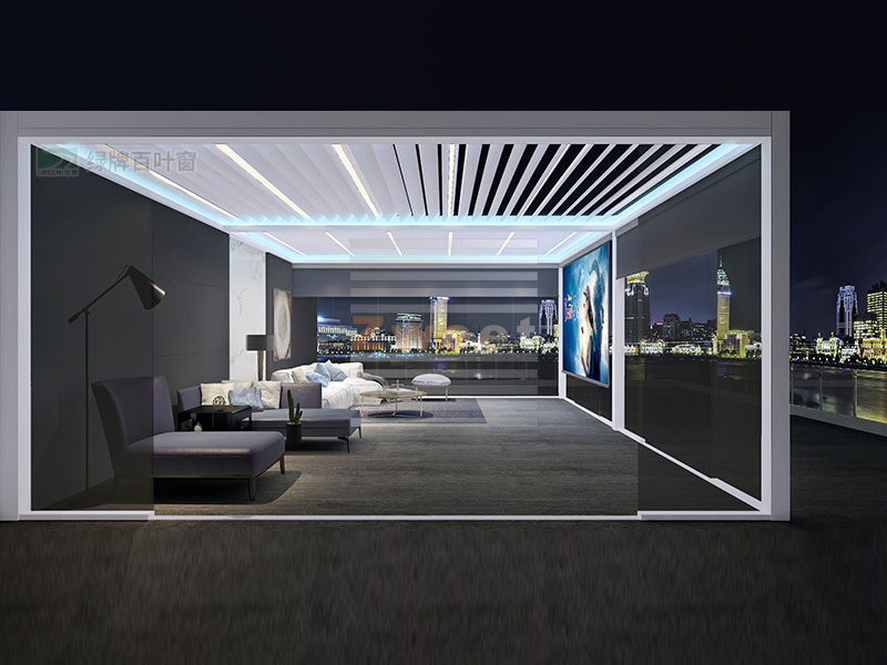綠牌頂面遮陽防雨百葉系統(tǒng)用于露臺遮陽,設(shè)計簡約,美觀實用,通過調(diào)節(jié)頂面的百葉系統(tǒng),起到很好的遮陽防雨效果。